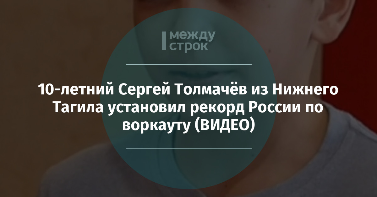 10-летний воркаутер Сергей Толмачёв из Нижнего Тагила попал в Книгу рекордов России. Юный спортсмен выполнил 32 раза упражнение бёрпи с прихлопом за одну минуту.