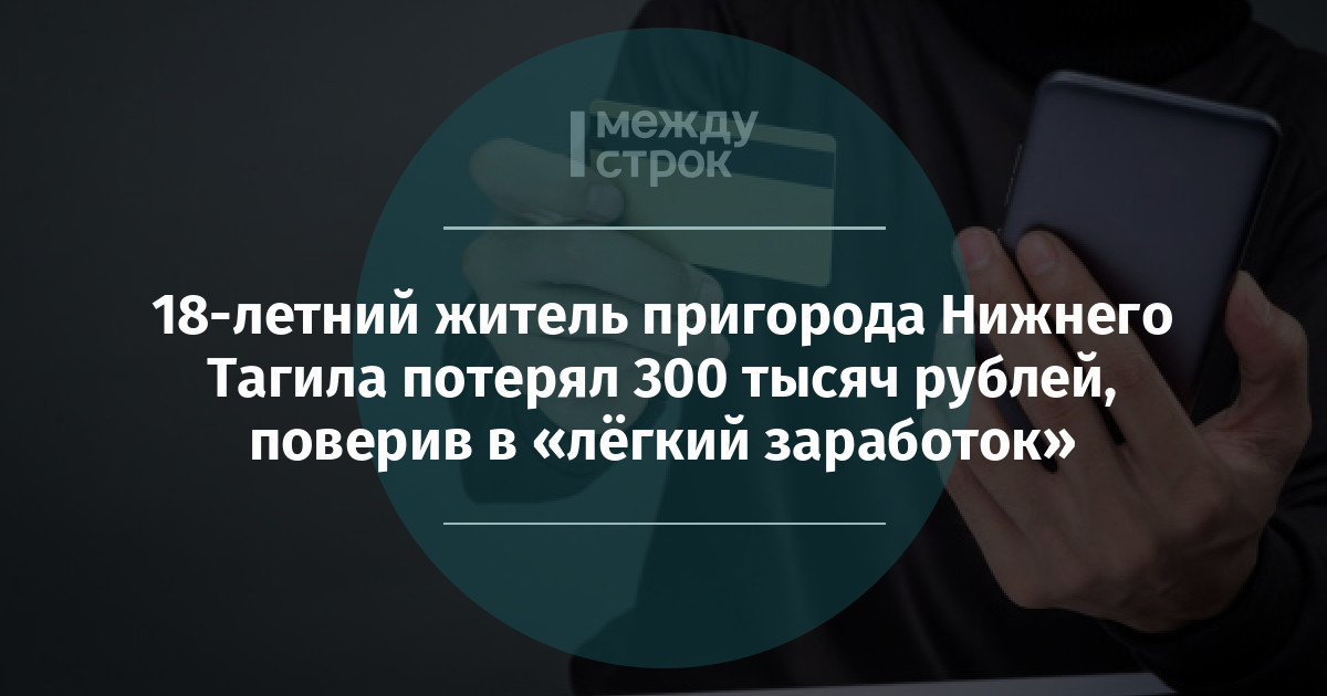 18-летний житель пригорода Нижнего Тагила потерял 300 тысяч рублей, поверив в «лёгкий заработок»