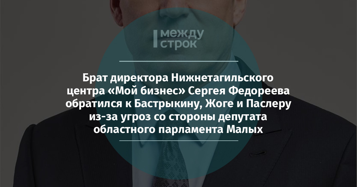 Брат директора Нижнетагильского центра «Мой бизнес» Сергея Федореева обратился к Бастрыкину, Жоге и Паслеру из-за угроз со стороны депутата областного парламента Малых