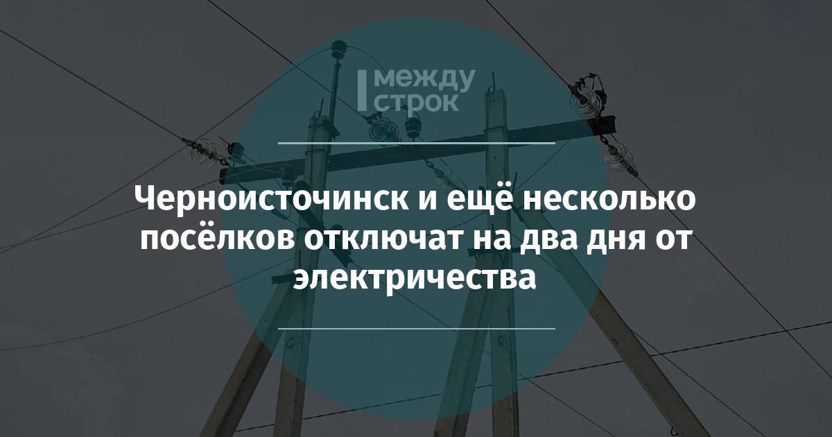 24 марта с 10:00 до 18:00 планируется отключение электричества в Черноисточинске (частично), Антоновском (частично), Чауже, Канаве и селе Елизаветинское. 25 марта с 10:00 до 18:00 свет отключат в Черноисточинске (частично), Антоновском и Студённом.