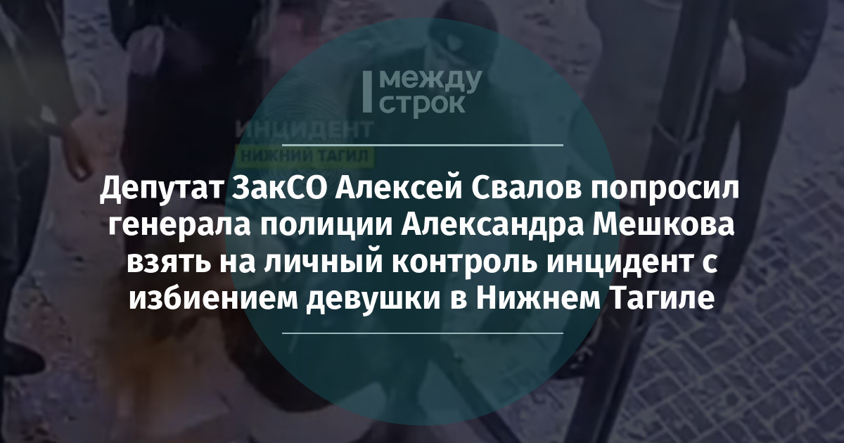 Депутат ЗакСО Алексей Свалов попросил генерала полиции Александра Мешкова взять на личный контроль инцидент с избиением девушки в Нижнем Тагиле