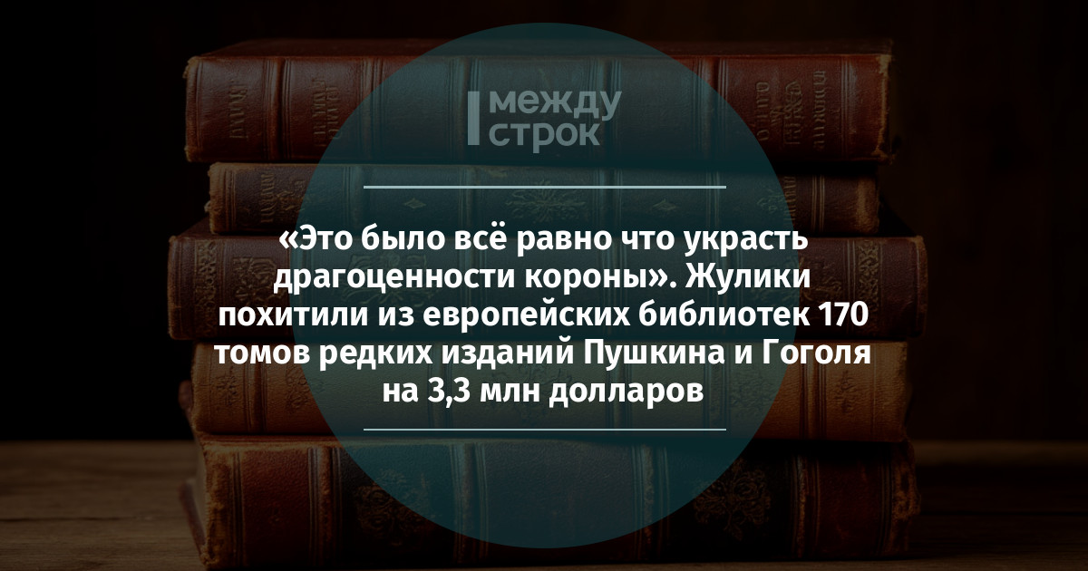 В течение 2022–2023 годов из библиотек Европы было украдено 170 томов редких изданий русской классики стоимостью около 3,3 млн долларов, пишет газета The Guardian.