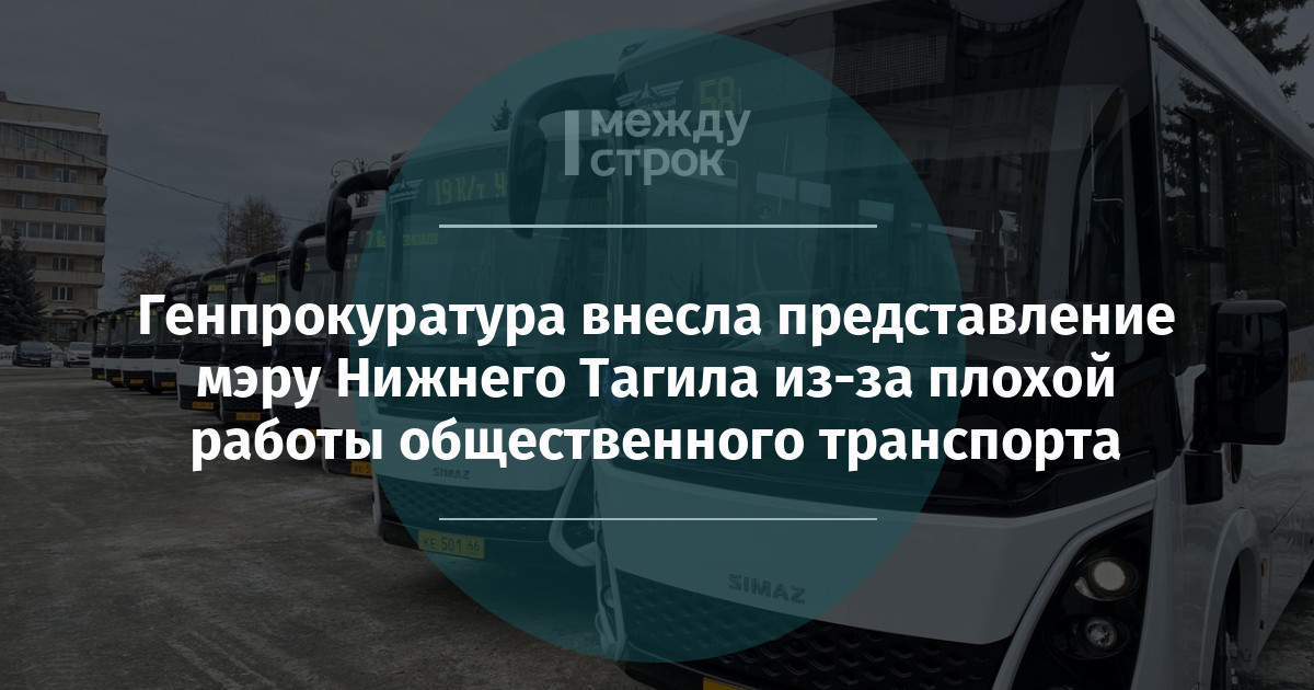 Управление Генеральной прокуратуры РФ по Уральскому федеральному округу совместно с прокуратурой Свердловской области провело проверку по жалобе жительницы Нижнего Тагила на работу общественного транспорта. В результате надзорных мероприятий были выявлены многочисленные нарушения законодательства: несоблюдение расписания, ненадлежащее оформление путевых листов и трудовых отношений с водителями, отсутствие медицинских осмотров и другие.