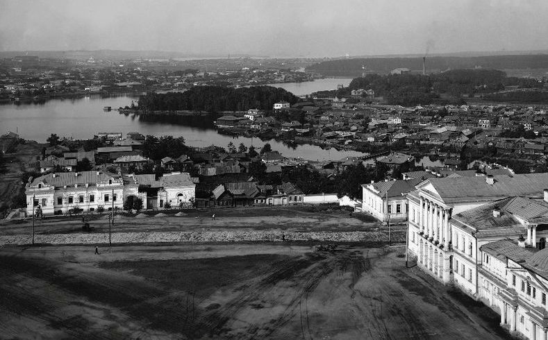 Вид на Большую Вознесенскую улицу и реку Мельковку. Слева — усадьба И. И. Редикорцева