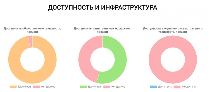 Доступность общественного транспорта в городе оценена на 97%, доступность магистральных маршрутов — на 54%. Внеуличный магистральный транспорт в городе отсутствует.