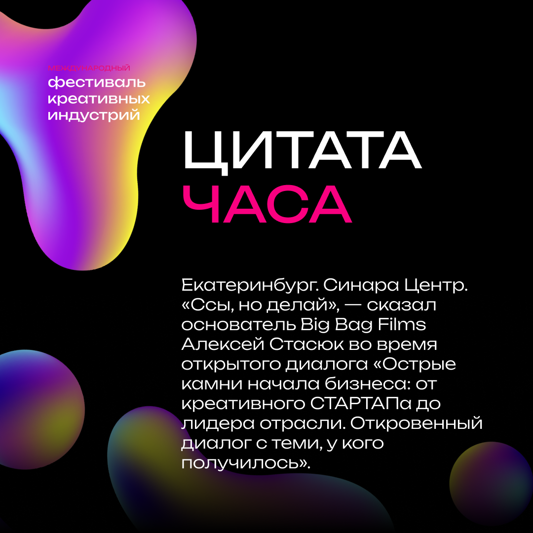 «Сегодня вы на площадке, где каждая идея может стать началом масштабного культурного явления, нового бизнеса и личной истории успеха. Спасибо за уникальные проекты и стремление менять мир вокруг. Желаю вам достижений на этом творческом пути. Уверен у вас все получится!» — сказал врио губернатора Свердловской области Денис Паслер.