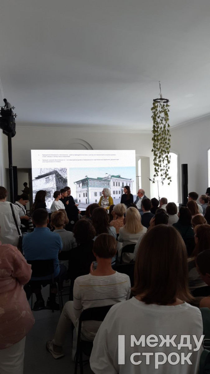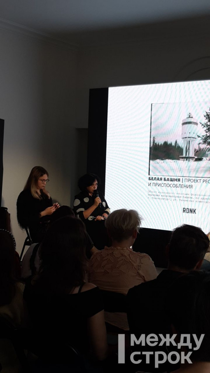 Архитектор, реставратор и основатель архитектурного бюро «Рождественка» Наринэ Тютчева начала выступление, и прозвучал комментарий от организаторов: «За три года, которые вы отсутствовали, было снесено 12 исторических зданий». На что Наринэ отметила: «Это заметно и печально!»
