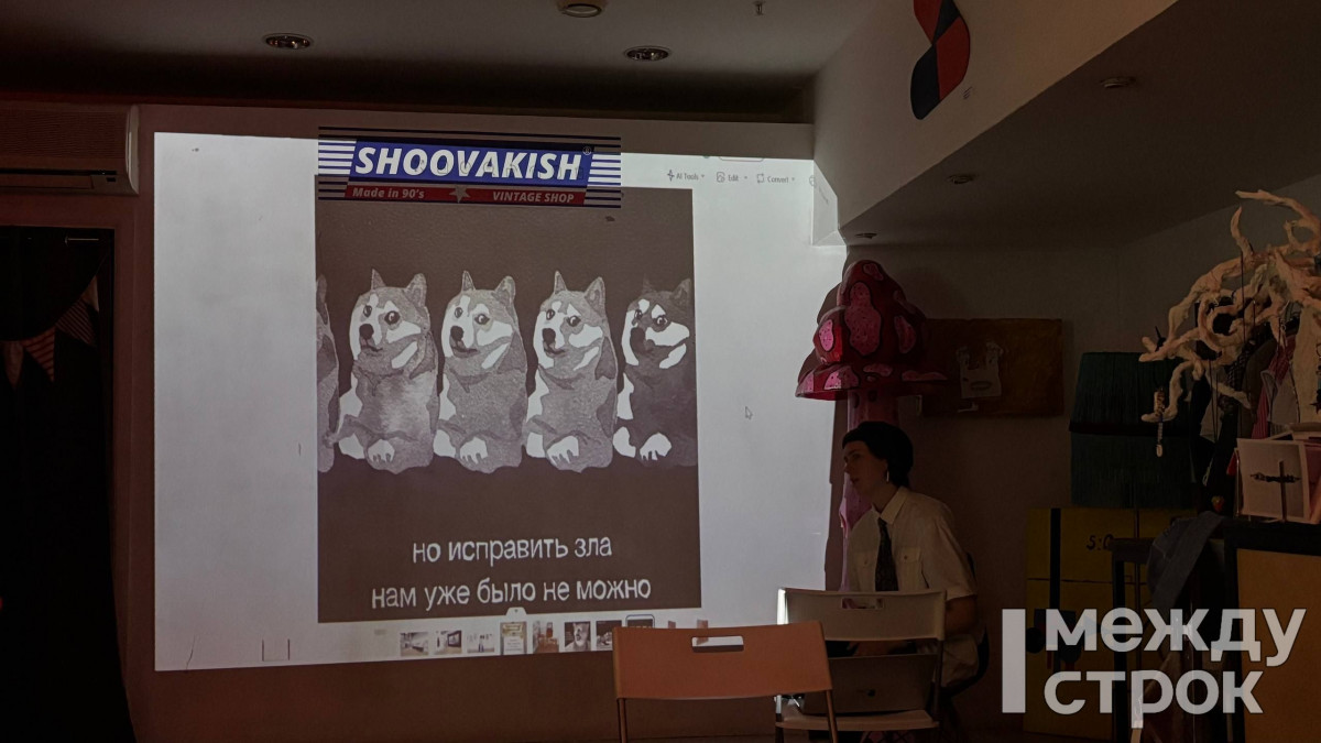 Екатеринбург. Сити-центр. Нижегородская художница Ваца: «Все предметы одежды из коллекции созданы через переосмысление популярных изображений, используемых в одежде, продающейся в провинциальных торговых центрах».