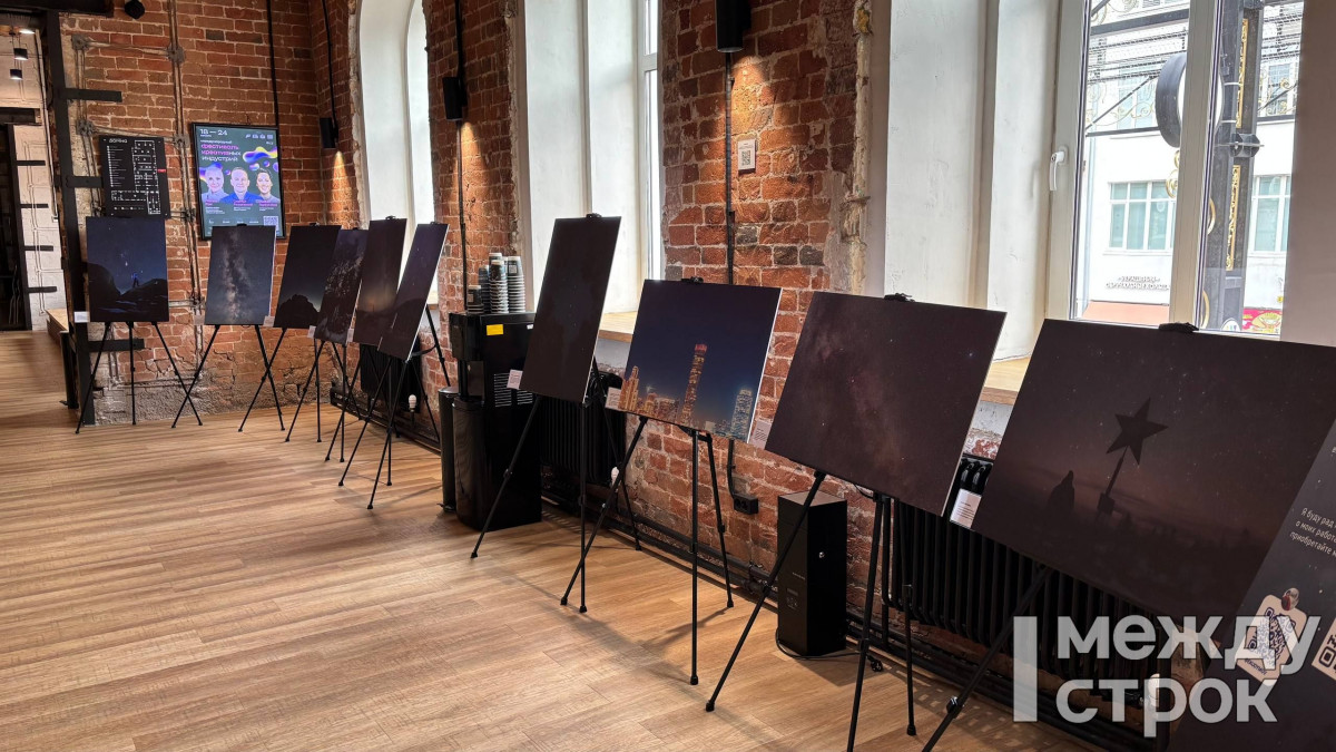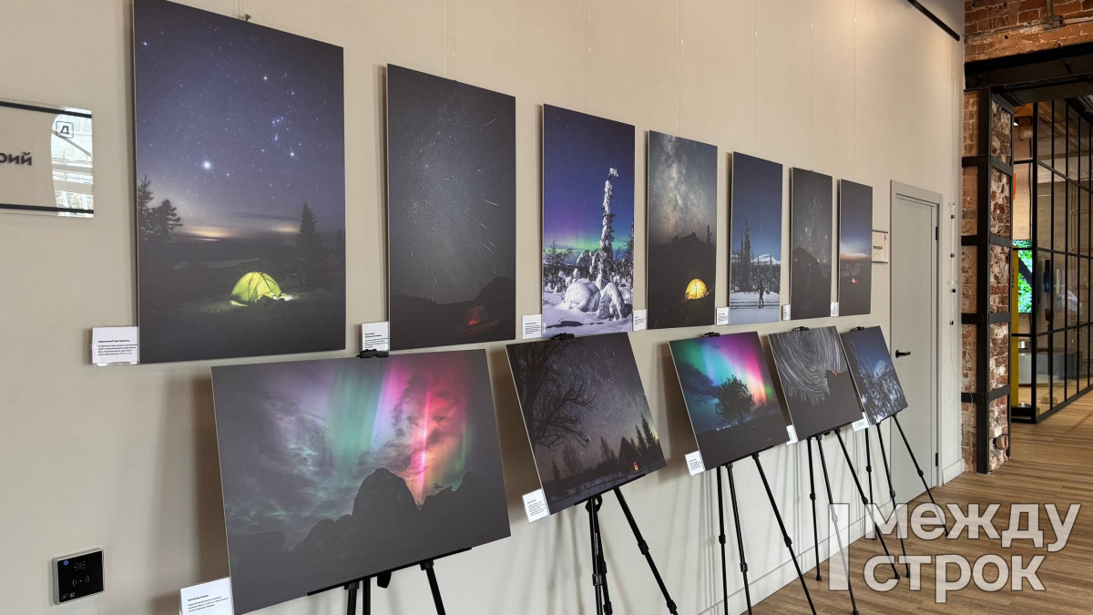 Екатеринбург. Перед началом трека по ИИ в креативном кластере «Домна» начала работу выставка фотографий астрофотографа Евгения Кудымова.
