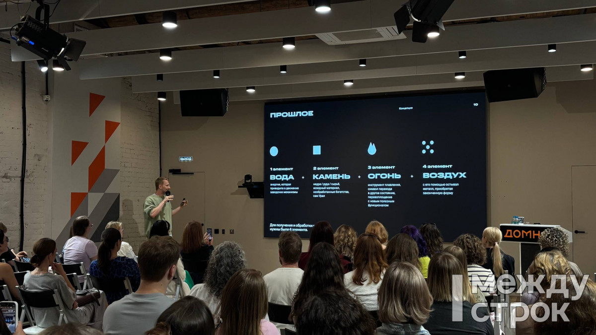 Екатеринбург. Креативный кластер «Домна». Идёт лекция директора по цифровым технологиям ИнПАД Артёма Тохтуева «Как ИИ меняет архитектуру и строительство: от идеи до готового проекта в разы быстрее».