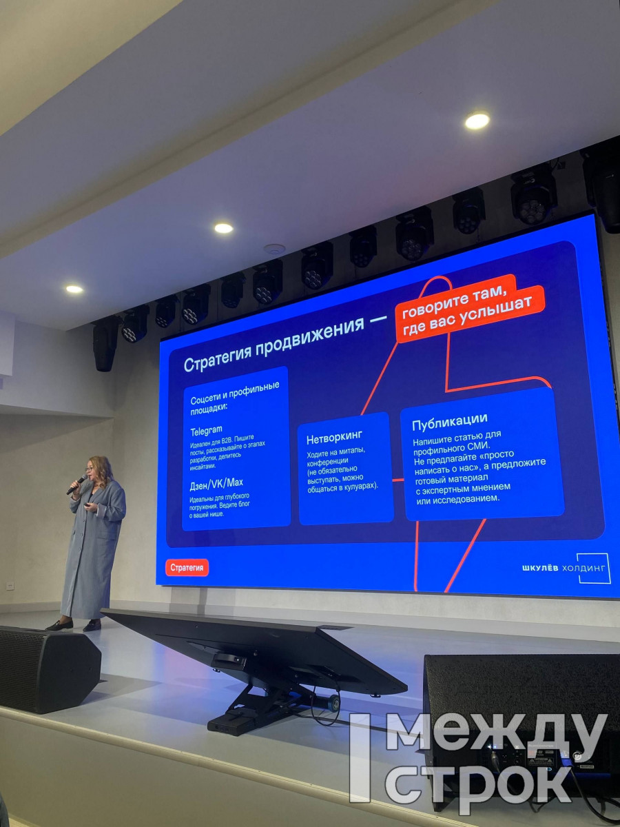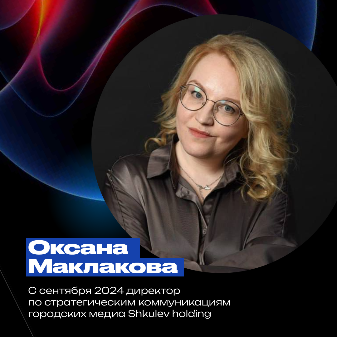 Следующий спикер — креативный директор по стратегическим коммуникациям городских медиа Shkulev holding (Москва) Оксана Маклакова выступает с темой: «Как рассказать о своем проекте так, чтобы тебя заметили».