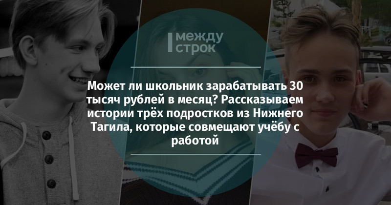 Подростки мечтают быть независимыми и самостоятельно зарабатывать, но кажется, что возможностей у них немного. На лето, если повезёт, можно устроиться в отряды мэра и получать 9500 рублей за несложную работу — уборку территории, покраску лавочек и заборов. Правда, количество рабочих мест ограничено, а желающих много, поэтому школьнику не удастся проработать в отряде дольше одного месяца. Выход один — осваивать современную профессию и совмещать работу с учёбой. Журналист АН «Между строк» Екатерина Кукина разыскала трёх подростков из Нижнего Тагила, которые начали строить карьеру до того, как сдали ЕГЭ.