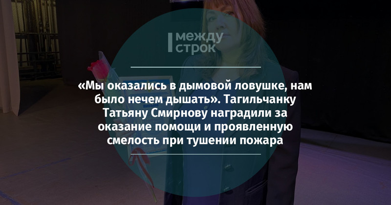 «После того как я увидела дым и почувствовала запах гари из окна, я сложила марлю в три слоя, намочила водой и дала бабушке, чтобы она смогла через неё дышать, а также вызвала пожарных. Мы оказались в дымовой ловушке, нам было нечем дышать. Клубы дыма шли прямо на нас через закрытую дверь и окна», — рассказывает тагильчанка.