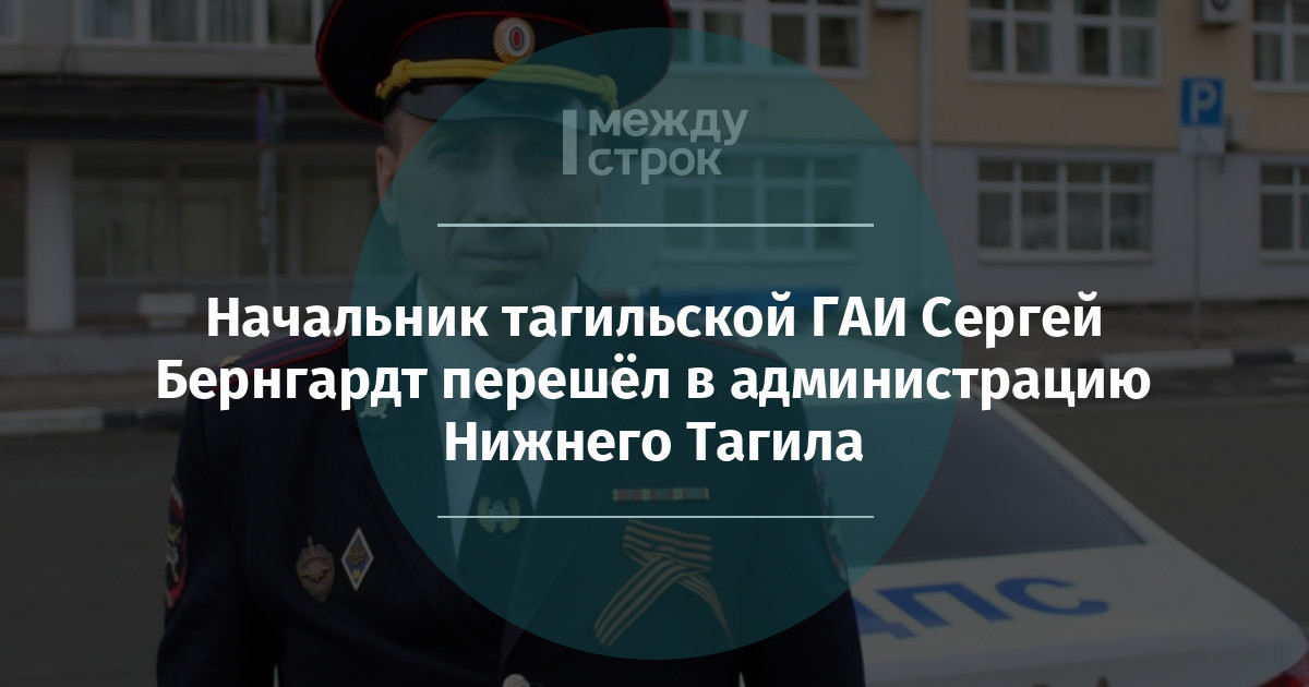 В Нижнем Тагиле теперь уже бывший начальник городской Госавтоинспекции Сергей Бернгардт покинул свой пост и перешёл на муниципальную службу. Как сообщает ИА «Все новости», в настоящее время эту должность с приставкой врио занимает майор полиции Александр Волков.
