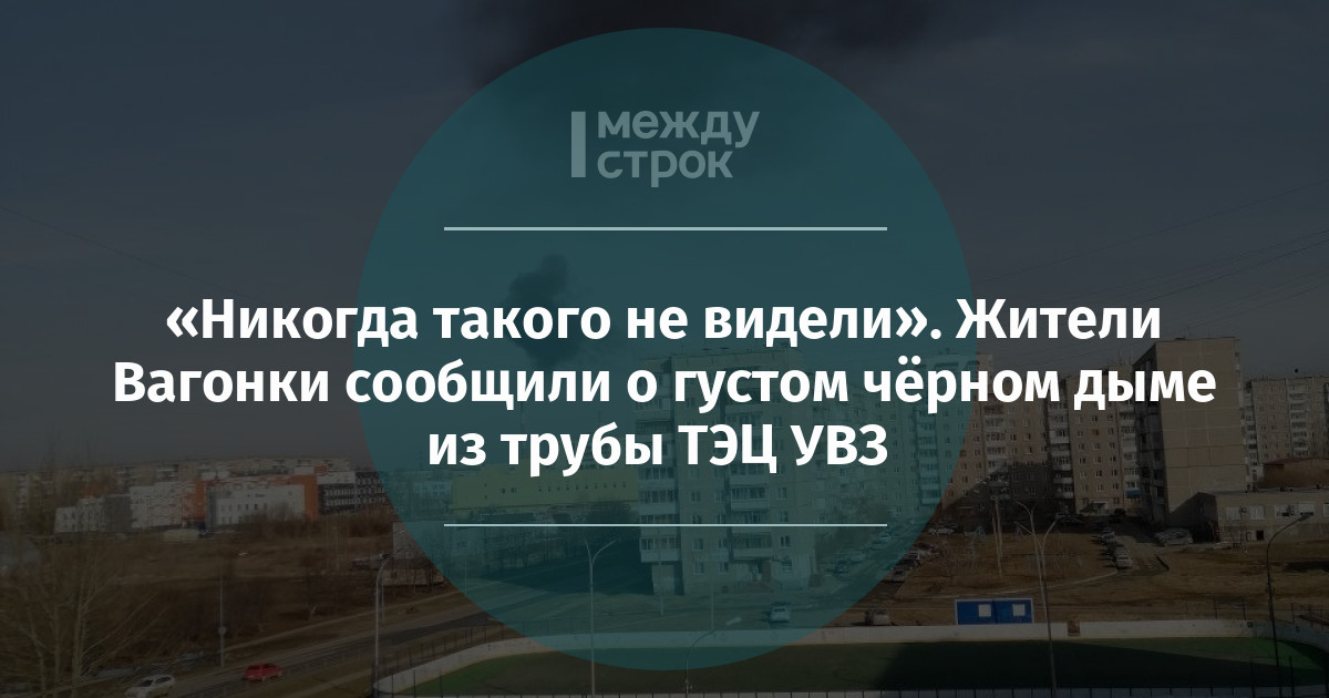 «Сегодня утром, примерно в 10:00, на Вагонке, было видно, как густой чёрный дым идёт из трубы ТЭЦ УВЗ. Мы много лет здесь живём и никогда такого не видели. Зимой видно, как из трубы идёт белый пар, а летом и пара не видно. Но чёрного дыма ни разу не было. Возможно была какая-то авария», — рассказали АН «Между строк» очевидцы.
