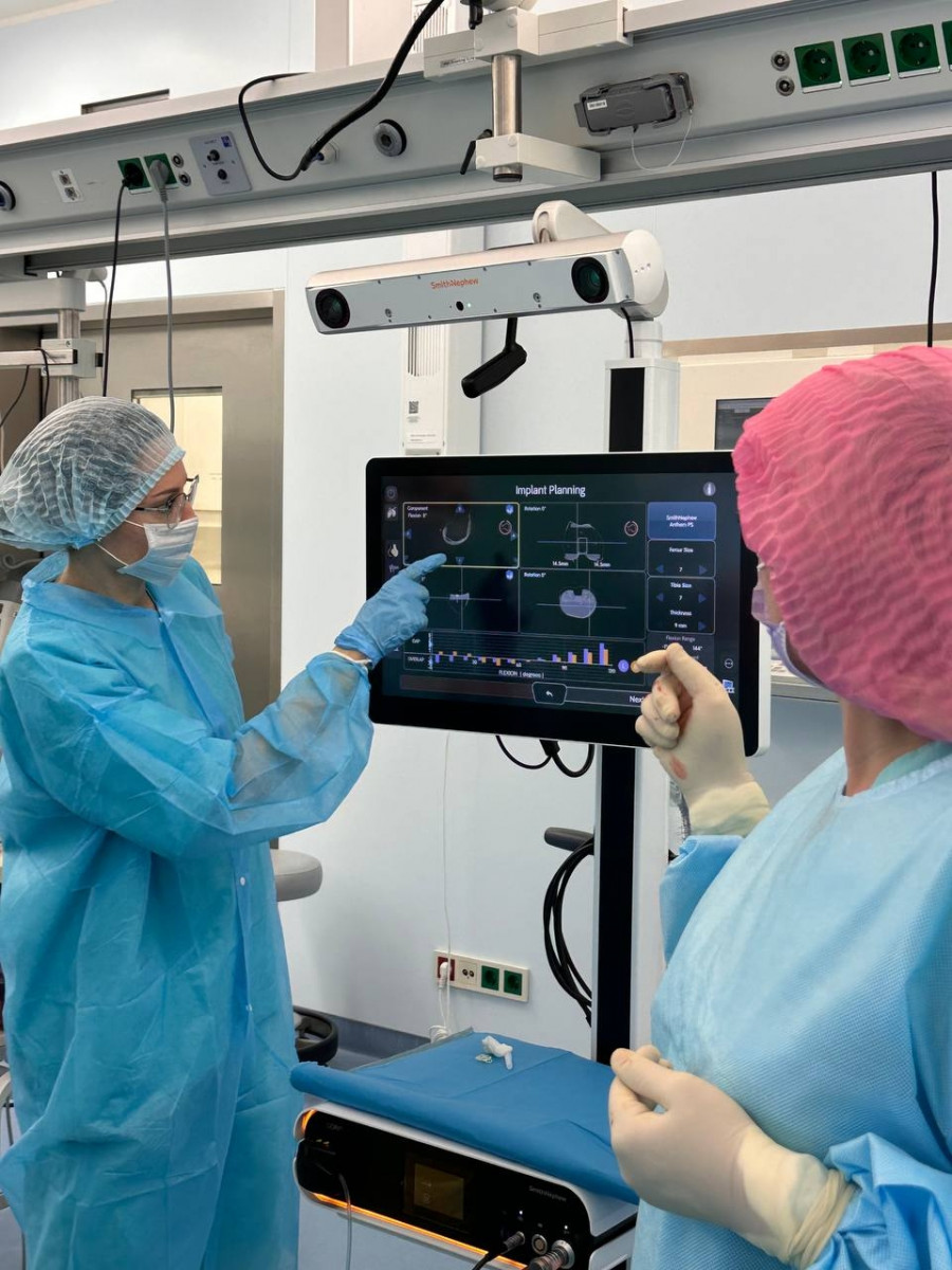«Мы видим 3D-модель в костной ткани, видим костную ткань за анатомическими структурами, которые во время операции визуально доктору иногда тяжело оценить. Опираясь на модель сустава, мы делаем точное позиционирование компонентов эндопротеза, которое позволяет максимально сохранить биологическую ось конечности, всю амплитуду движений, уменьшить гиперрастяжение связочного аппарата. Так обеспечивается безболезненный и долгий срок службы эндопротезов», — отмечает главный врач УКЛРЦ им. В. В. Тетюхина Сергей Амзаев.