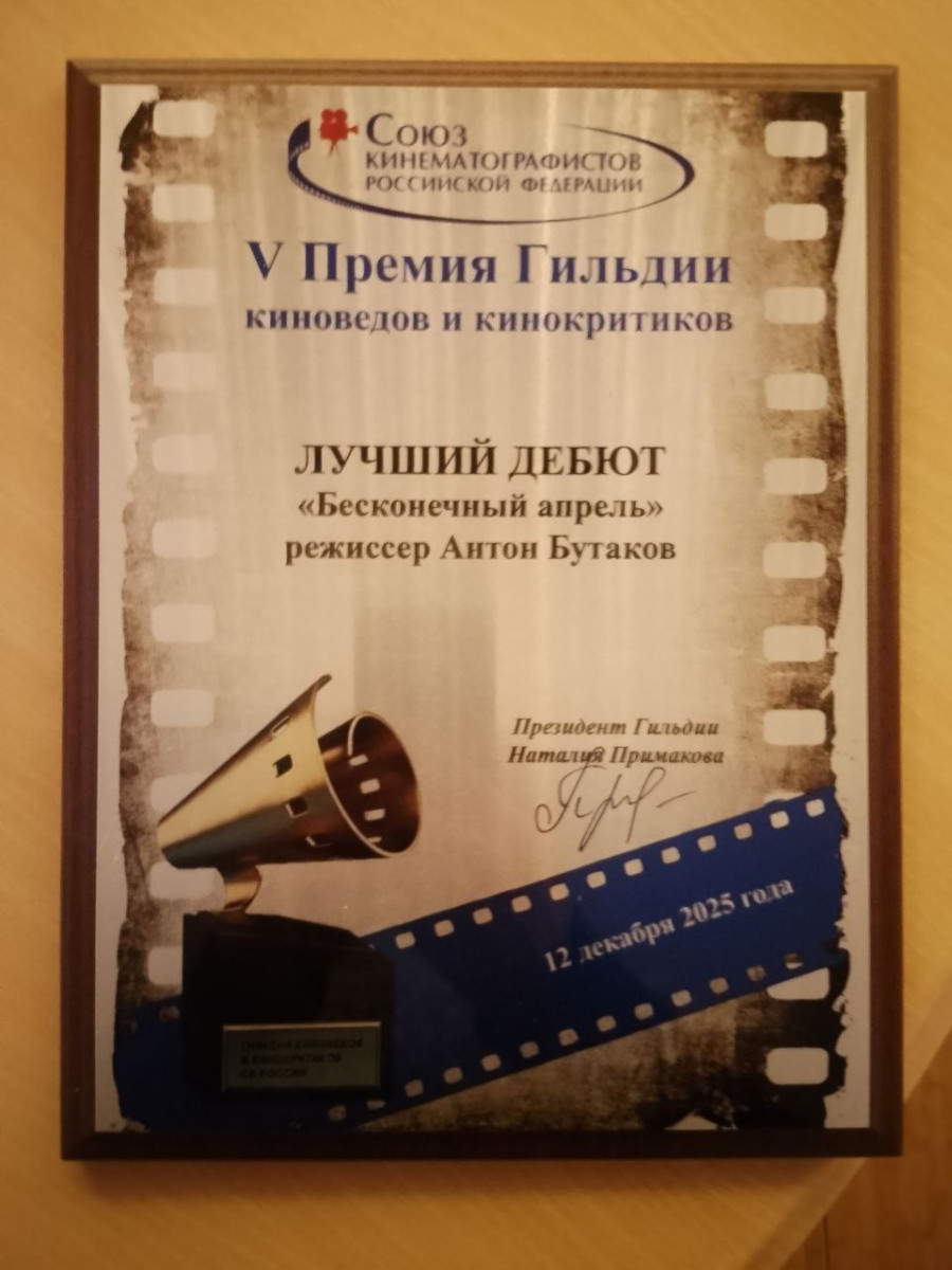 Первый полнометражный фильм «Бесконечный апрель» (18+) бывшего режиссёра Нового Молодёжного театра Нижнего Тагила Антона Бутакова о семейных ценностях, крепкой дружбе и первых шагах в мире взрослых отношений, получил премию Гильдии киноведов и кинокритиков в категории «Лучший дебют». Церемония награждения победителей состоялась в Москве, в Доме русского зарубежья имени Солженицына.