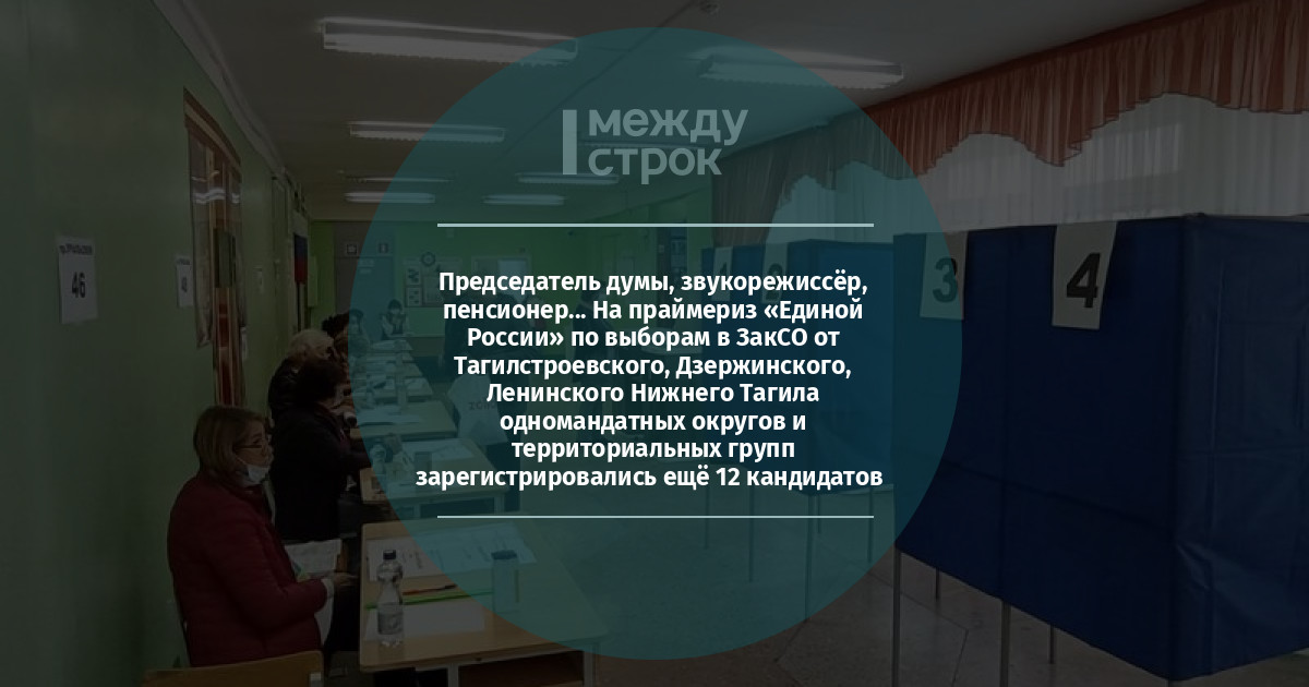 На праймериз (предварительное голосование) «Единой России» по выборам в Законодательное собрание Свердловской области (ЗакСО) от Дзержинского (№ 19), Ленинского (Нижний Тагил, № 20), Тагилстроевского (№ 21), одномандатных округов и трёх территориальных групп зарегистрировались ещё 12 кандидатов.