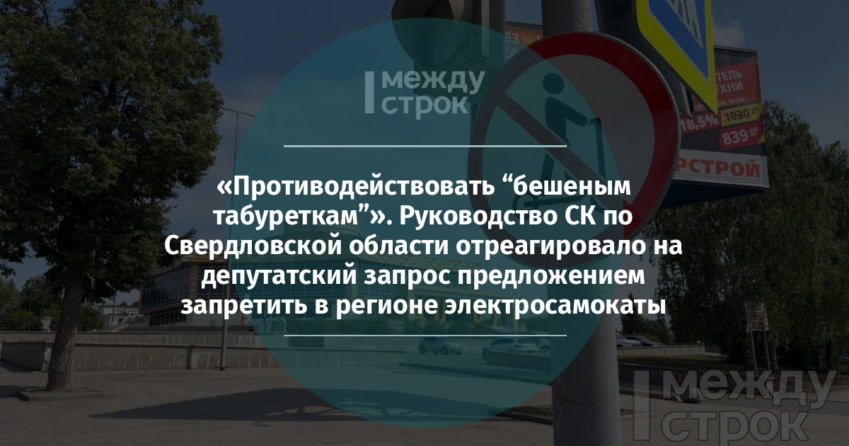 «Прошу Вас в рамках предоставленных полномочий рассмотреть вопрос о внесении в адрес Законодательного собрания Свердловской области предложения, направленного на разработку и принятие соответствующего нормативного акта, предусматривающего запрет использования электросамокатов на территории Свердловской области, установление ответственности за его нарушение», — говориться в письме СК, которое депутат Альшевских опубликовал в своих соцсетях.