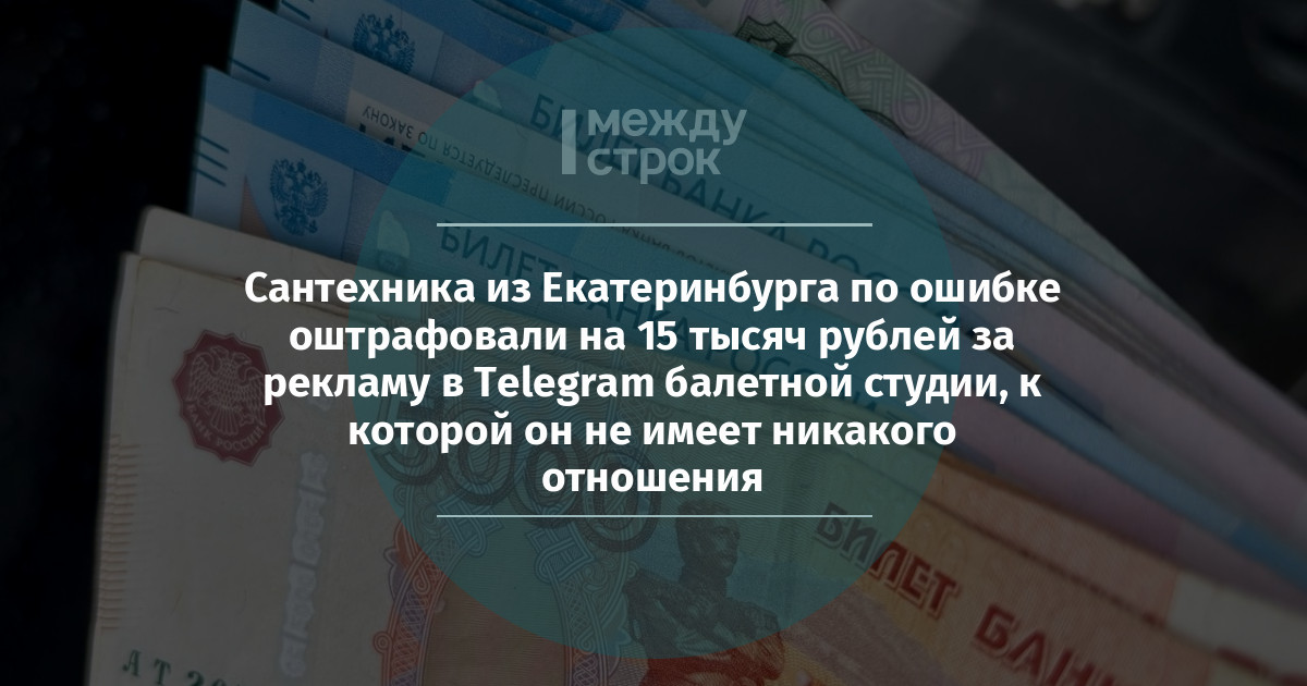 Сантехника из Екатеринбурга по ошибке оштрафовали на 15 тысяч рублей за рекламу в Telegram балетной студии, к которой он не имеет никакого отношения