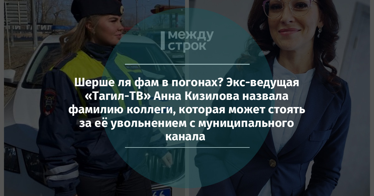 «В начале марта мне выдали уведомление о прерывании со мной трудового договора с формулировкой: “В соответствии со статьёй 288 Трудового кодекса РФ о прекращении заключённого с Вами трудового договора (на условиях внешнего совместительства) в связи с постоянным переводом на занимаемую Вами должность работника учреждения, для которого эта работа будет являться основной". Через две недели я вынуждена была уйти. Решение о прерывании со мной контракта принято в связи с конфликтом интересов, связанным с Общественным советом при МУ МВД России “Нижнетагильское” и формированием нового созыва. По словам директора “Тагил-ТВ” Владислава Волынского, увольнение связано с моей работой в совете, которая якобы привела к проверке полиции в отношении “Тагил-ТВ” и возможному привлечению к ответственности журналиста и оператора телекомпании. Однако официальных документов о проверке представлено не было, всё было только на словах», — ранее рассказала АН «Между строк» Анна Кизилова.