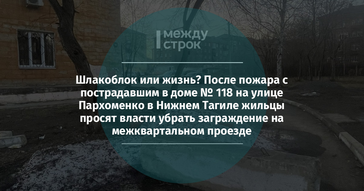 Шлакоблок или жизнь? После пожара с пострадавшим в доме № 118 на улице Пархоменко в Нижнем Тагиле жильцы просят власти убрать заграждение на межквартальном проезде