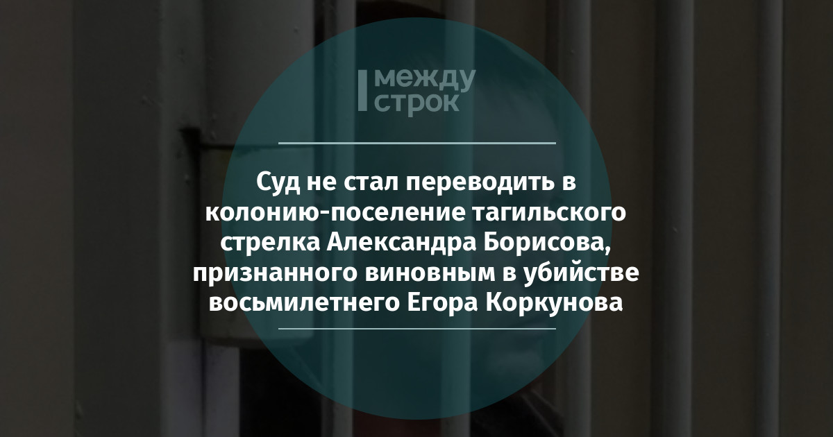 Напомним, трагедия произошла 4 августа 2019 года в районе коллективного сада № 7 НТМК на Ольховке. Александр Борисов организовал стрельбу по банкам, в процессе которой один из стрелявших подростков случайно ранил в голову 8-летнего Егора Коркунова. Согласно тексту приговора, Борисов заряжал для подростка винтовку и якобы руководил его действиями.