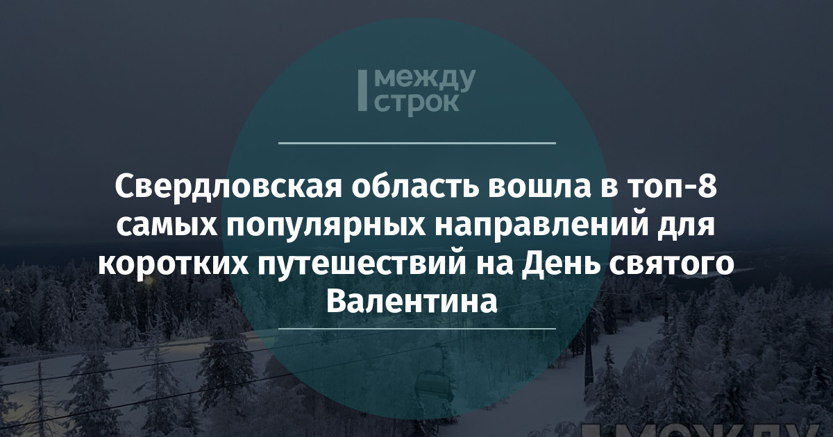 Свердловская область заняла восьмое место в рейтинге самых популярных направлений для коротких путешествий на День святого Валентина, следует из данных сервиса «Купибилет».