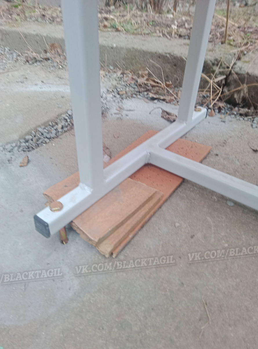 На прикреплённых фотографиях видно, что скамейка прикручена к плитке, однако из-за неровной площадки работникам пришлось подложить для устойчивости несколько кусков ДВП между ней и одной из ножек.