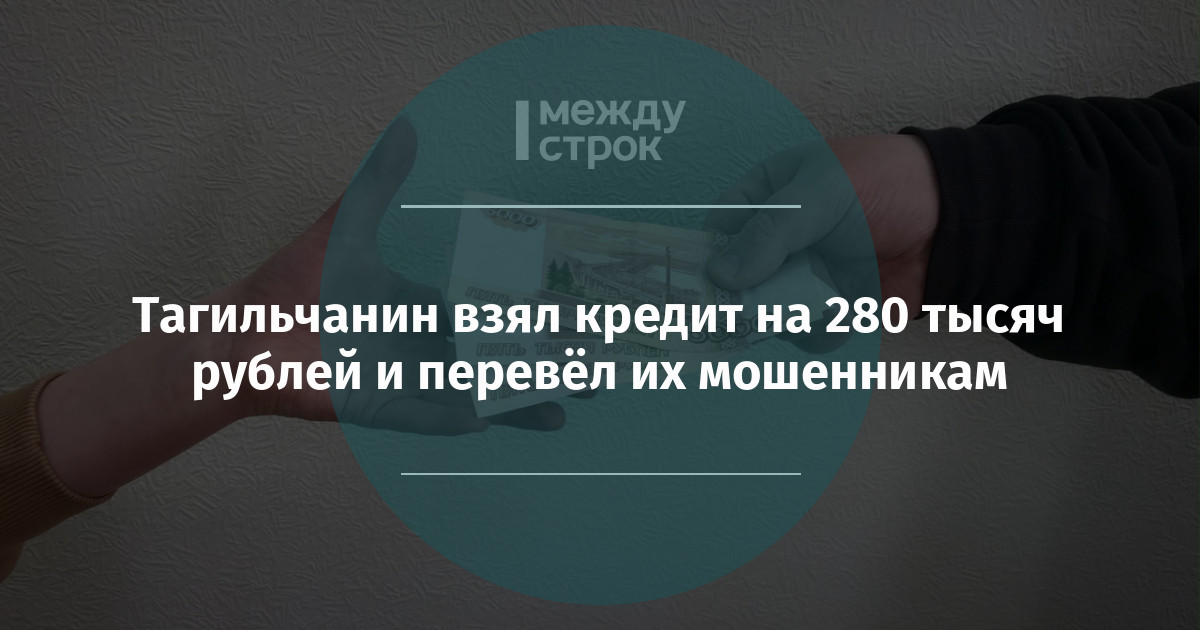 Тагильчанин взял кредит на 280 тысяч рублей и перевёл их мошенникам