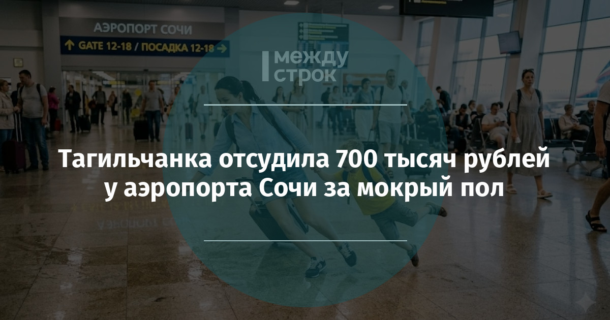 Как установил суд, летом прошлого года тагильчанка вместе с ребёнком находилась в аэропорту Сочи. Направившись к месту ожидания после прохождения досмотра, она вместе с ребёнком упала, поскользнувшись на мокром полу. В результате падения ребёнок получил ушиб грудной клетки, а женщина — травму позвоночника, из-за чего ей потребовалось длительное лечение и восстановление.