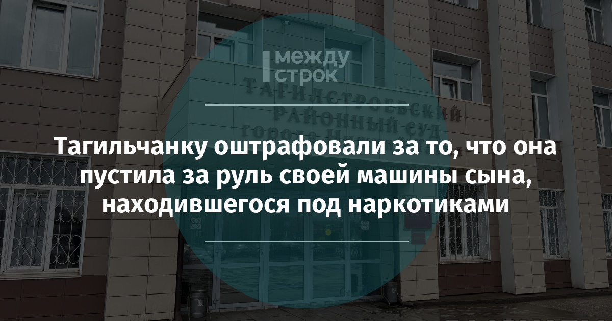 Жительницу Нижнего Тагила оштрафовали за то, что она передала управление своим автомобилем марки Kia сыну, находившемуся под наркотиками. Как сообщает пресс-служба Тагилстроевского районного суда, инцидент произошёл в июле текущего года ночью на Уральском проспекте.