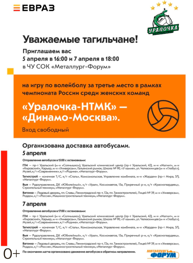 Волейбольный матч «Уралочка-НТМК» против «Динамо Москва» (0+)