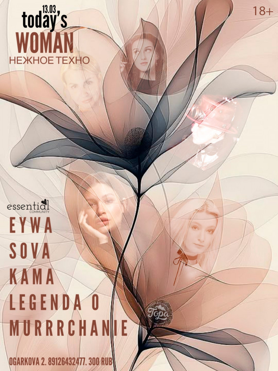 Очарование девочек-диджеев, умноженное на мощные плотные ритмы — это залог отличного вечера. Для вас будут играть Eywa, Sova, Kama, Legenda O и Murrrchanie. Вход — 300 рублей. Бронь столиков по номеру +7(912)643-24-77.