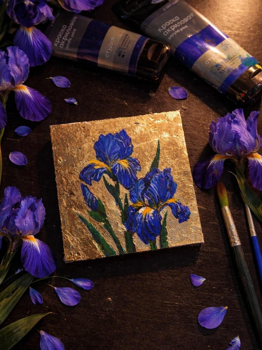 Мастер-класс «Ирисы на холсте: рисуем золотой поталью» (12+)