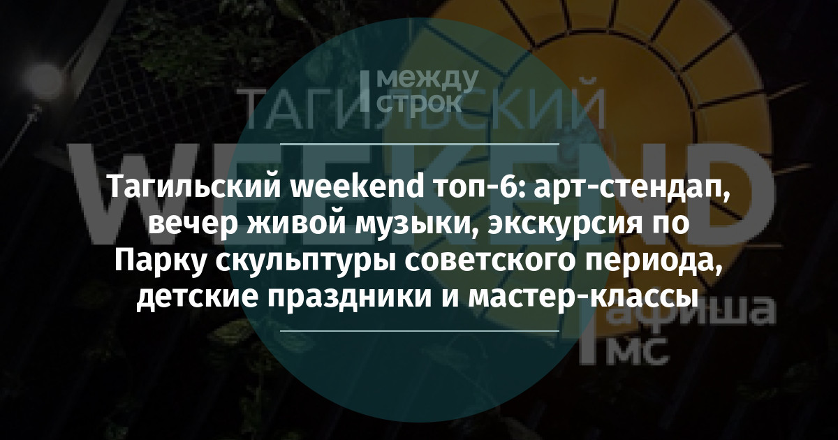 Мэр Нижнего Тагила может чувствовать себя в безопасности, поскольку покушение на него может совершить только бродячая собака. Ну а мы составили для вас нашу традиционную подборку мероприятий на эти тёплые выходные. Проведите время с удовольствием и почувствуйте магию города.