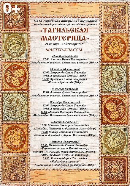 В рамках XXIХ городской выставки народного творчества и художественных ремёсел «Тагильская мастерица» пройдёт серия мастер-классов. Один из них состоится в субботу: «Разделочная досочка. Тагильская роспись».