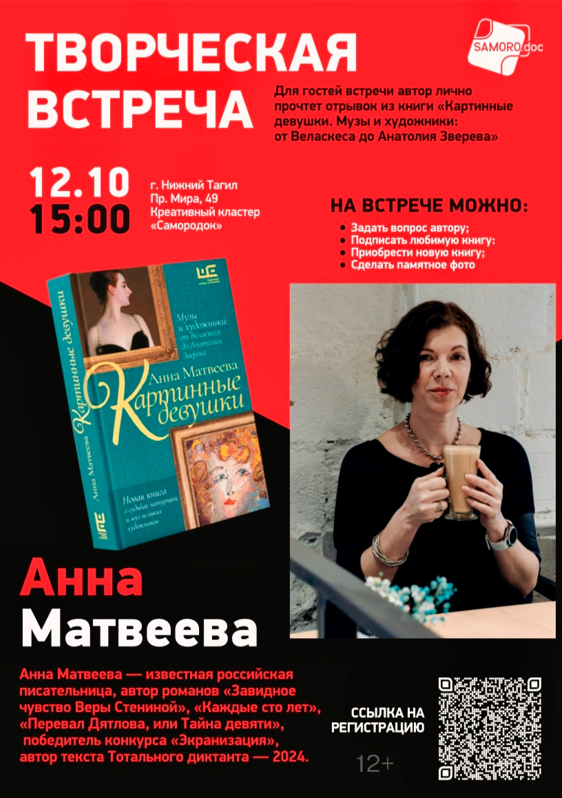 Анна Матвеева — известная российская писательница, финалист премий «Национальный бестселлер», «Большая книга» и «Ясная Поляна», автор текста Тотального диктанта — 2024. Она прочтёт главу «Вечная весна» из книги «Картинные девушки». А после обязательно ответит на вопросы читателей. В рамках встречи запланирована автограф-сессия, а также вы сможете купить книги писательницы. Необходима предварительная регистрация.