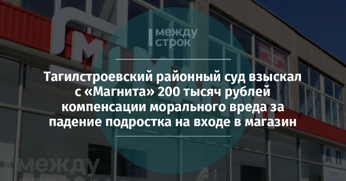 В Нижнем Тагиле Тагилстроевский районный суд взыскал компенсацию морального вреда в пользу 14-летнего подростка, получившего травму у входа в магазин «Магнит».