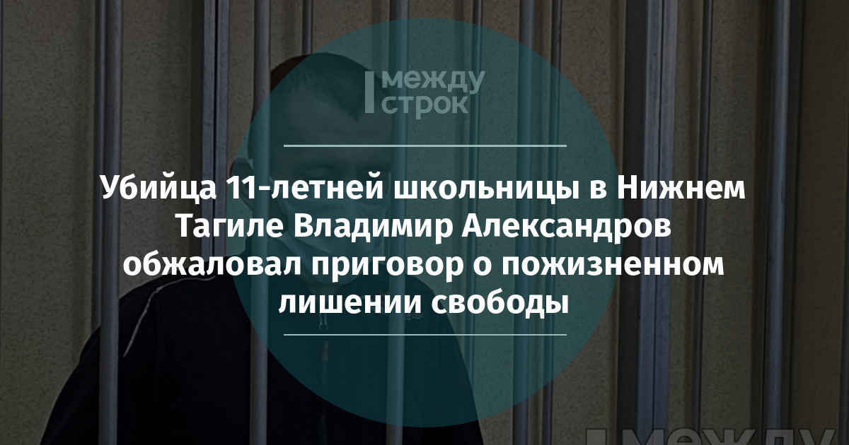 Защита Владимира Александрова, осуждённого Свердловским областным судом к пожизненному заключению за убийство и изнасилование 11-летней школьницы в Нижнем Тагиле, обжаловала приговор. Это следует из картотеки его дела.