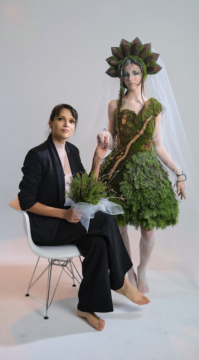 В создании наряда дизайнер использовала ветки пихты и берёзы, УФ-смолу, кору дерева, шишки и мох разных видов. Ранее Ольга Скакун представила эту работу на всероссийском конкурсе флористов «Ёлочный переполох» (0+).