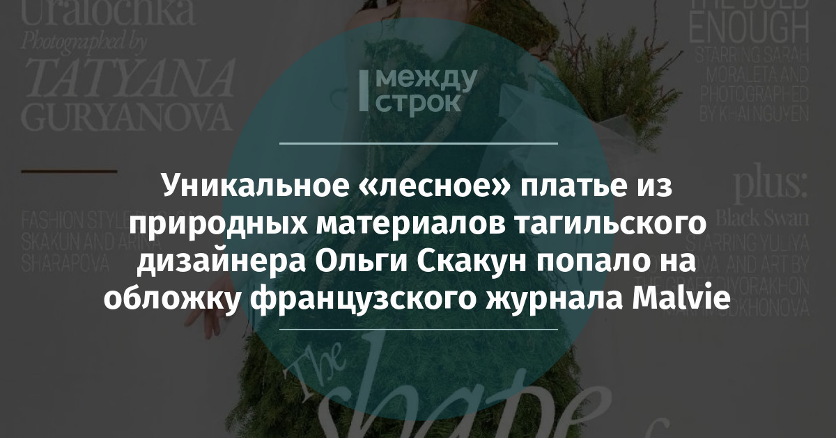 Платье «Уралочка» тагильского дизайнера Ольги Скакун, сделанное из природных материалов, попало на обложку французского журнала Malvie. Об этом Ольга сообщила в своих соцсетях. Аудитория издания в Instagram* составляет более 100 тысяч подписчиков.