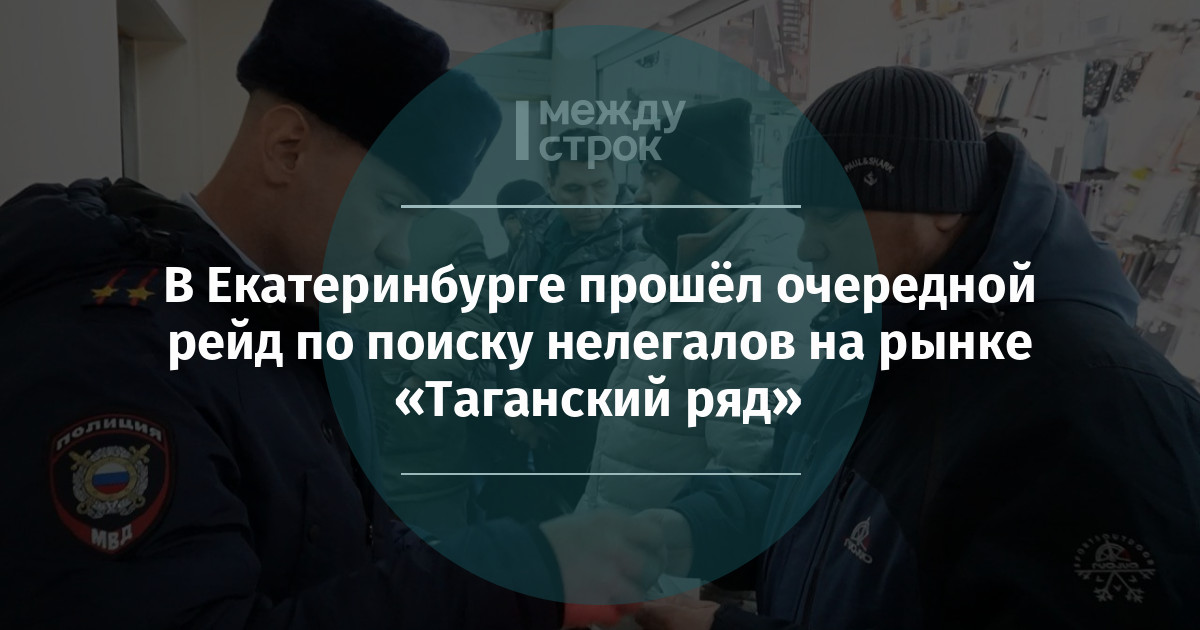 Проверка прошла в Железнодорожном районе Екатеринбурга в рыночном комплексе «Таганский ряд» и на прилегающей к нему территории, сообщил руководитель пресс-службы регионального главка МВД Валерий Горелых. В профилактической акции участвовали сотрудники подразделения по вопросам миграции, центра по противодействию экстремизму, районной прокуратуры и военкомата, а также бойцы ОМОНа Росгвардии.