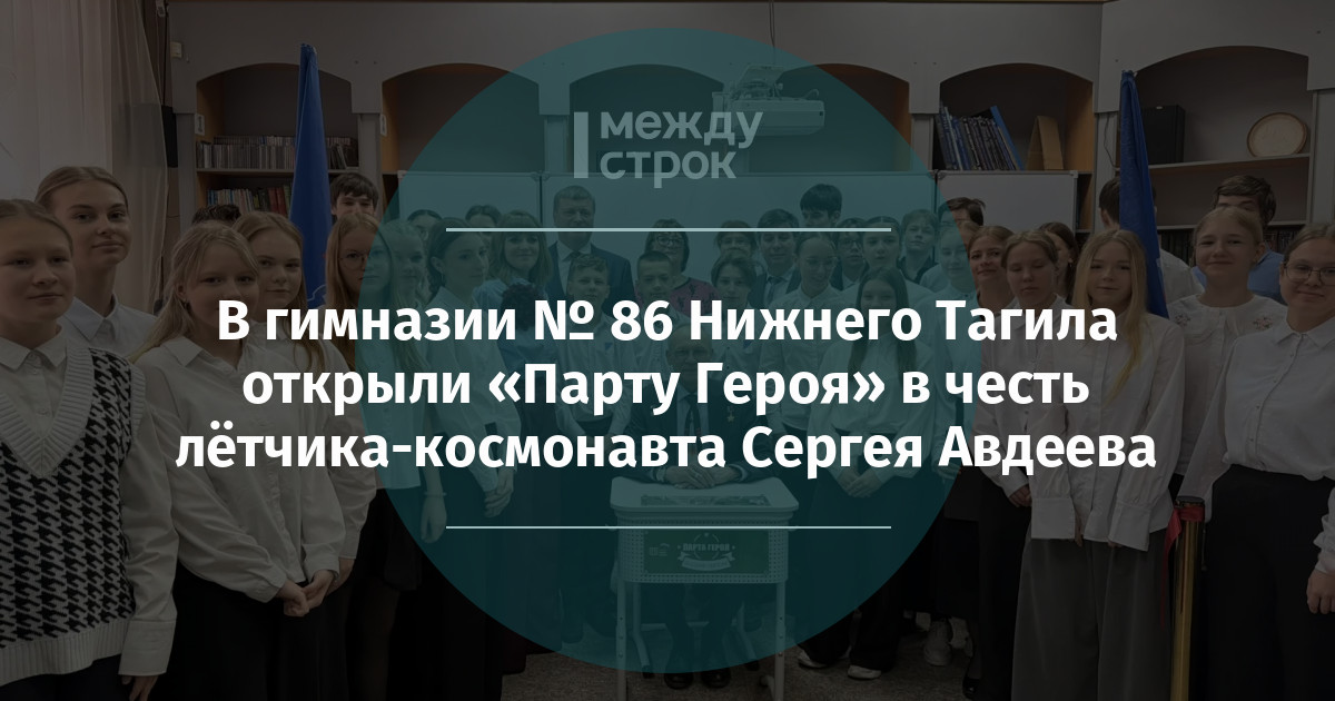 18 апреля в гимназии № 86 Нижнего Тагила состоялось торжественное открытие «Парты Героя» в честь лётчика-космонавта Сергея Васильевича Авдеева. Право перерезать красную ленту предоставили Сергею Васильевичу и победителю олимпиады по физике, ученику 10 «Б» класса — Алексею Спирину.