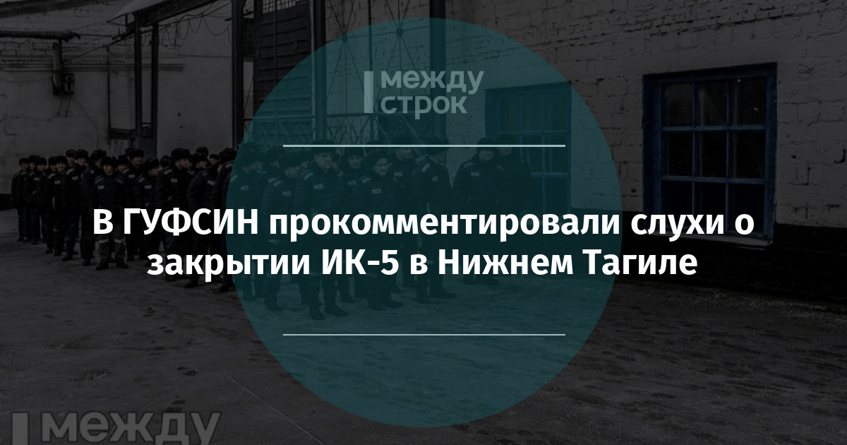 Недавно в социальных сетях и профильных пабликах стали появляться сообщения об этапировании заключённых из исправительной колонии № 5 в Нижнем Тагиле с последующим её закрытием. Однако в пресс-службе ГУФСИН России по Свердловской области рассказали АН «Между строк», что информация о закрытии не соответствует действительности.