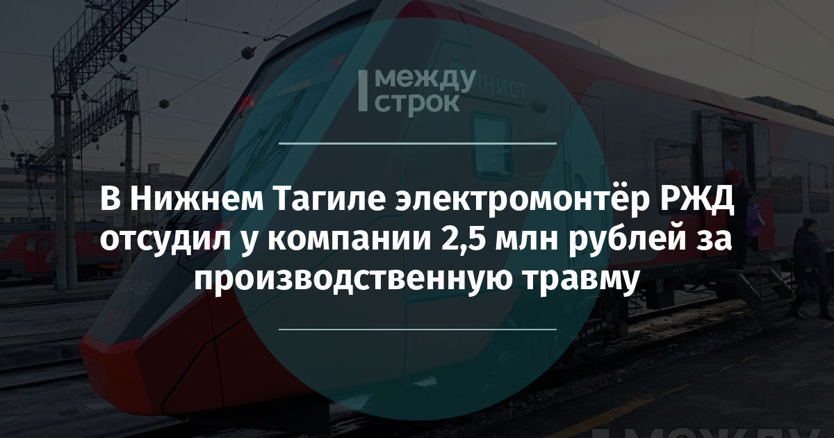 В Нижнем Тагиле электромонтёр РЖД отсудил у компании 2,5 млн рублей за производственную травму