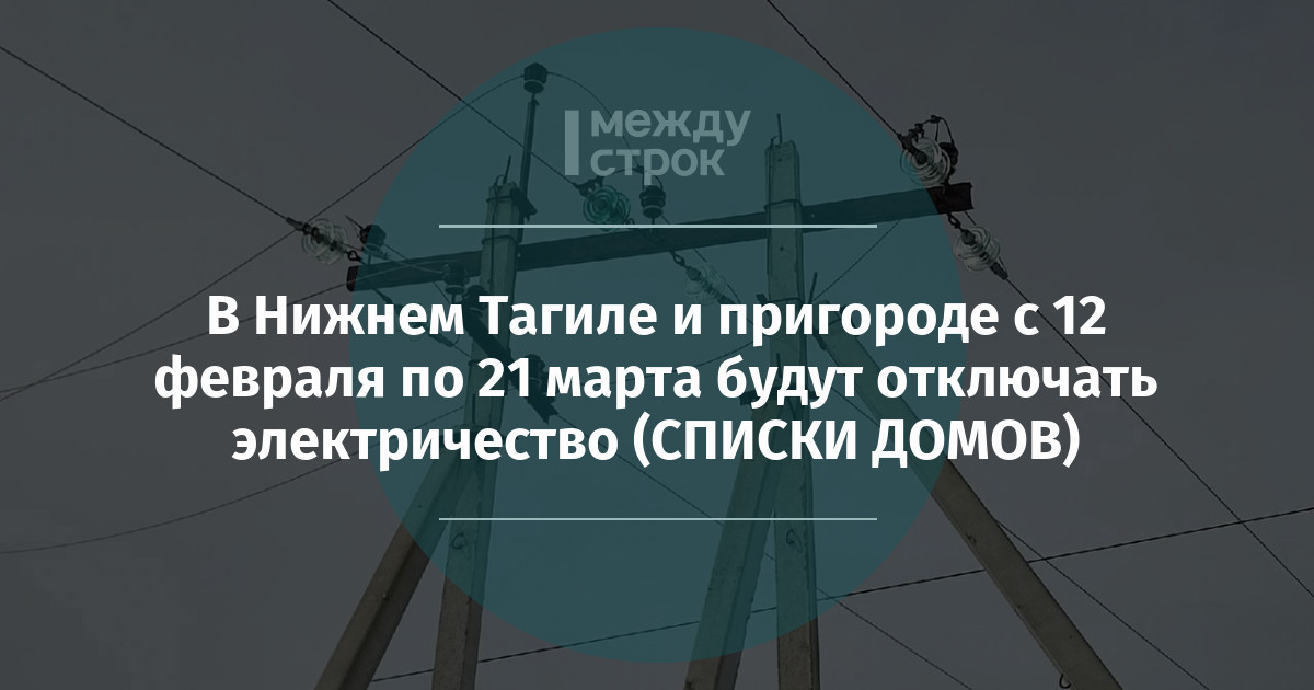 В Нижнем Тагиле и пригороде с 12 февраля по 21 марта будут отключать электричество (СПИСКИ ДОМОВ)
