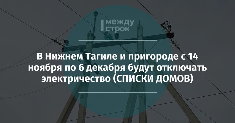 В Нижнем Тагиле с 14 ноября по 6 декабря АО «Облкоммунэнерго» филиал «Тагилэнергосети» будет проводить плановое отключение электроэнергии для проведения работ. Ограничения также коснутся посёлков Черноисточинск, Евстюниха, Висим, Волчевка, села Покровское. Свой адрес, число и время отключения можно посмотреть в таблице на сайте администрации города.