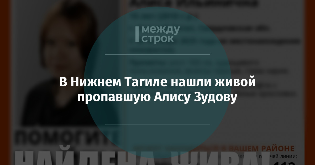 В Нижнем Тагиле нашли живой пропавшую Алису Зудову