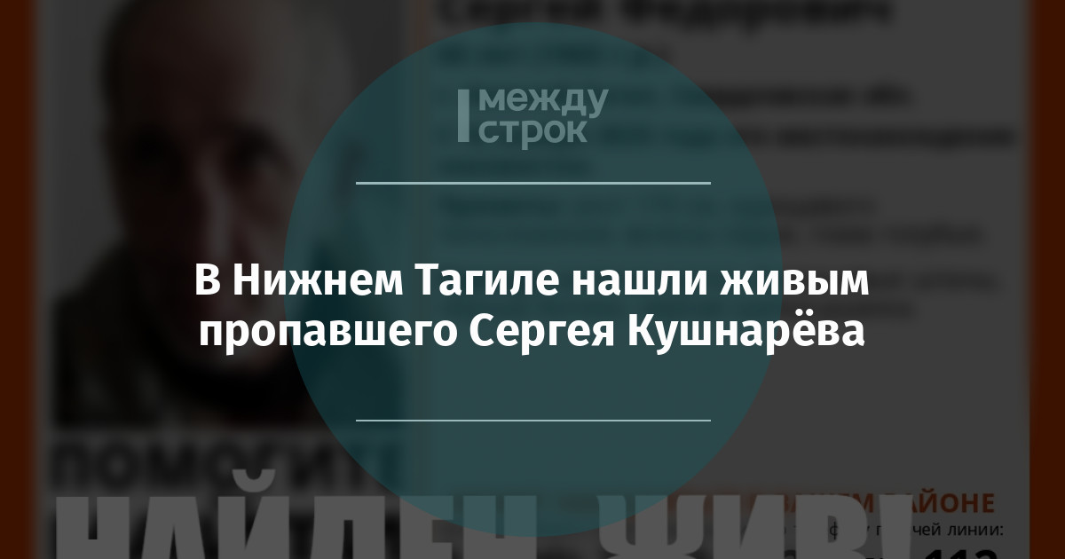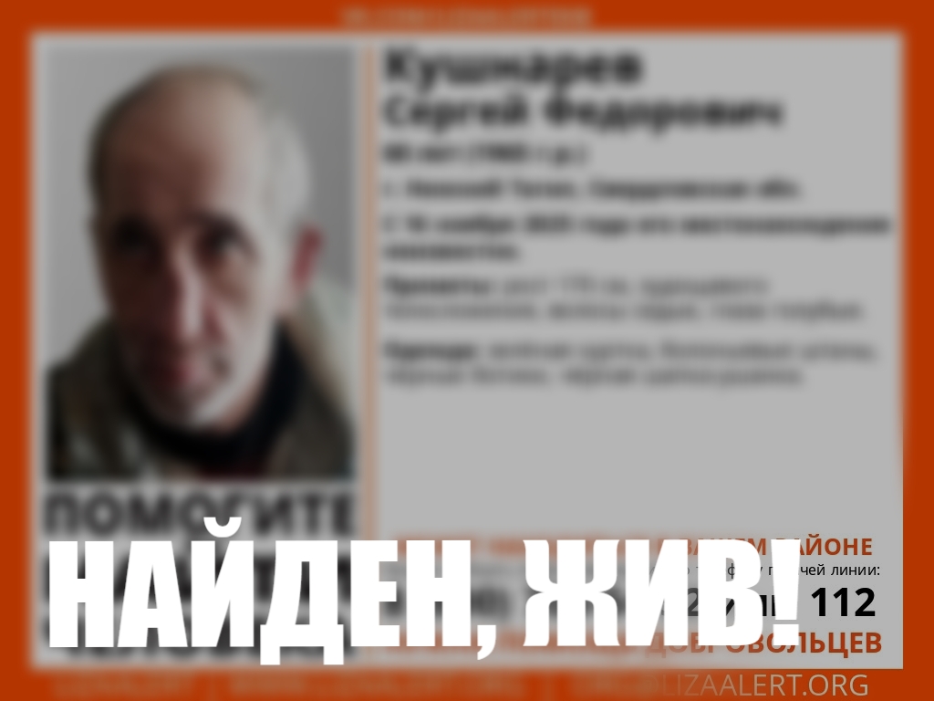 В Нижнем Тагиле завершились поиски 60-летнего Сергея Кушнарёва, сообщение о пропаже которого появилось в группе поискового отряда «ЛизаАлерт» в прошедший понедельник, 17 ноября.